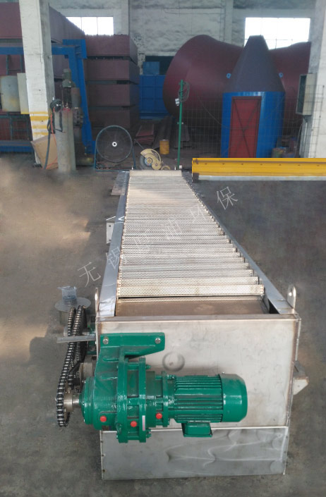 网板式阶梯格栅机能清除漂浮物、纤维物质,运行时不堵塞雍水,能将栅渣清除干净。主要由驱动装置、机架、传动链轮、牵引链条、网板及电气控制柜等主要部件组成。工作时网板在二侧传动链条的带动下,自下而上将整个渠道宽度范围内的污物向上提取,抵达上部时,通过链轮的转向功能,自动完成卸污工作。