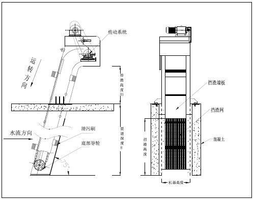WBF转刷网蓖式格栅除污机主要由驱动装置、机架、主轴、栅网、托渣板、固定板刷、回转刷及牵引链组成。在电机驱动下,通过减速机减速后,带动链轮与链条运动,固定在回转链条上板刷沿栅网网面由下而上移动,清扫网面并带走污物,污物运送至顶部时,大部分靠重力自行落至排渣都,少量附着在固定板刷上的污物被转动的回转刷清除掉,完成除污过程,液体则通过栅网的间隙流过,整个工作过程连续进行。