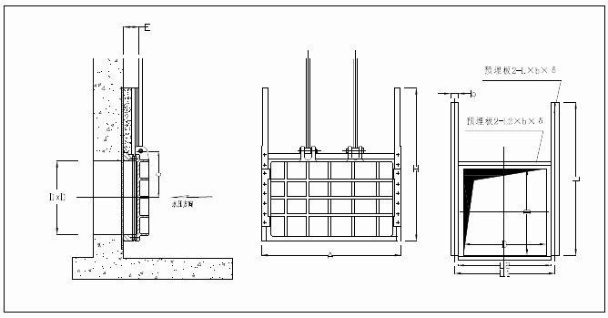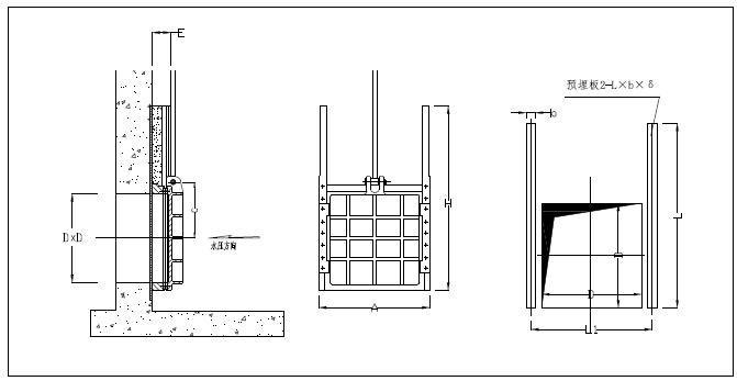 1、闸门应按图示位置安装、闸板设于迎水面;